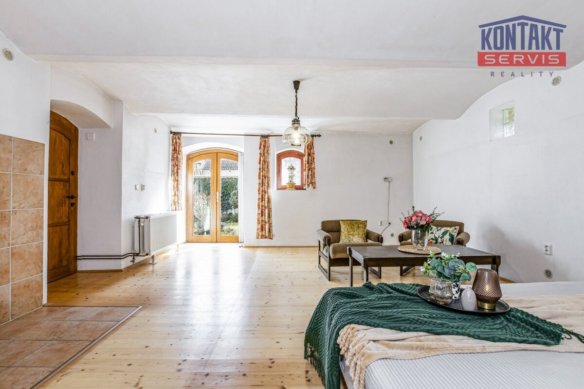 Exkluzivně nabízíme ke koupi řadový rodinný dům, nacházející se nedaleko historického centra Veselí nad Lužnicí, ulice Podhájkem. Vzhledem ke své poloze a charakteru je dům vhodný pro trvalé bydlení, rekreaci, případně i ke komerčnímu využití. Rodinný dům byl do současné podoby modernizován od devadesátých let minulého století (podlahy, rozvody elektřiny, vody i odpadů, okna, střecha a pod.). Obytná část je rozdělena do dvou samostatných objektů, když v přední části se nachází byt 2+kk s koupelnou, toaletou, technickou místností a garáží ( celkově 115 m2). Přes malebný uzavřený dvůr navazuje druhá budova, ve které je vybudována garsoniéra s vlastním sociálním zázemím (41 m2) a navazující technické zázemí domu (sklad a dílna o výměře 26 m2). V obou objektech jsou k dispozici prostorné půdní prostory, vhodné k výstavbě podkrovních obytných prostor. Dům je napojen na obecní vodovod a kanalizaci. Zavedena je elektřina i plyn. Topení je řešeno dvěma plynovými kotli s napojením do radiátorů. Zadní část parcely uzavírá na vedlejší budovou navazující menší zahrada. Celková výměra pozemku je 453 m2, z toho reálná zastavěná plocha obou budov je cca 145, resp. 98 m2. Z důvodu zák. povinnosti uvádíme energetickou třídu G. Na koupi nemovitosti je možné zajistit též výhodné úvěrování. Informace k nemovitosti poskytne a osobní prohlídku nemovitosti zajistí makléř zakázky.